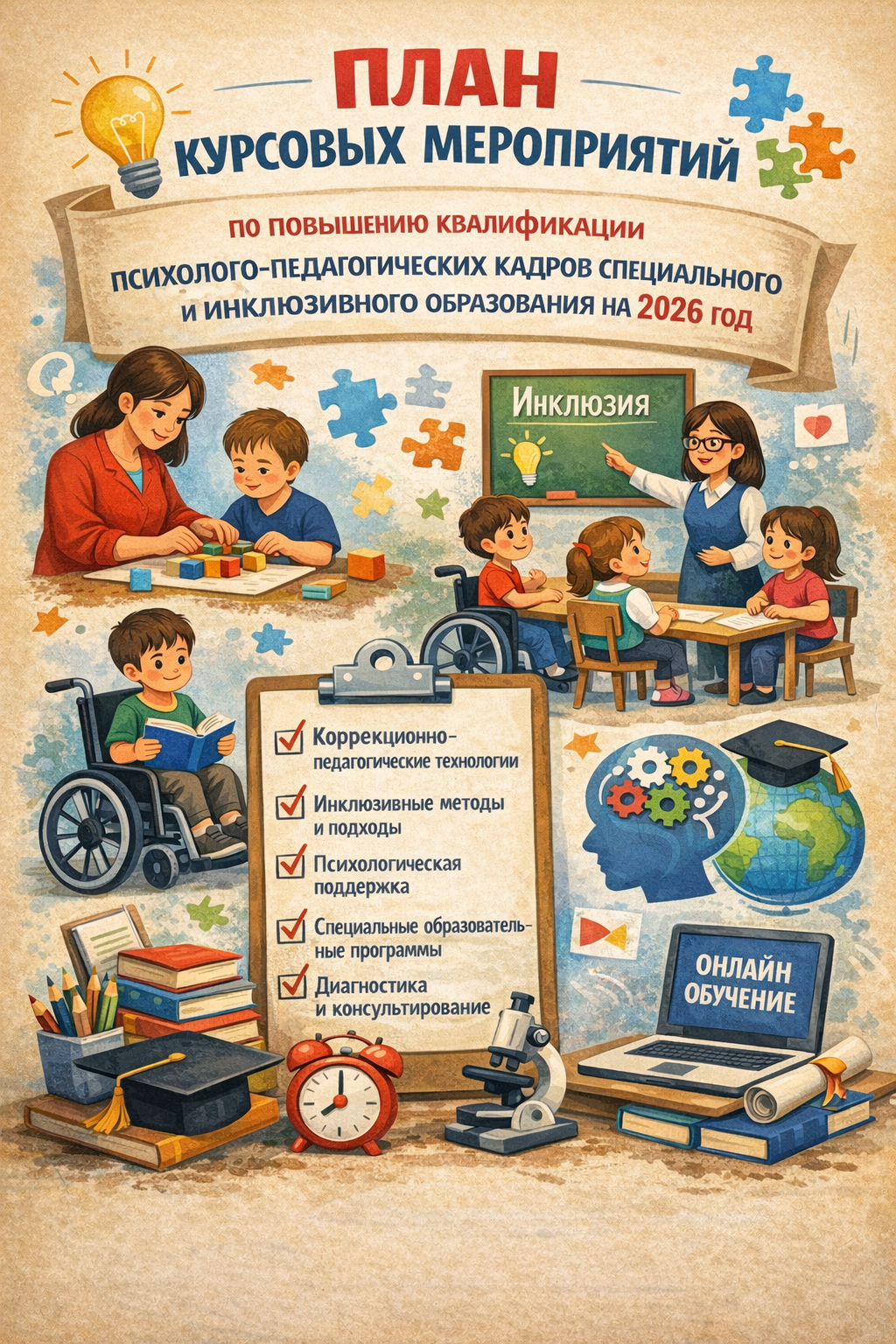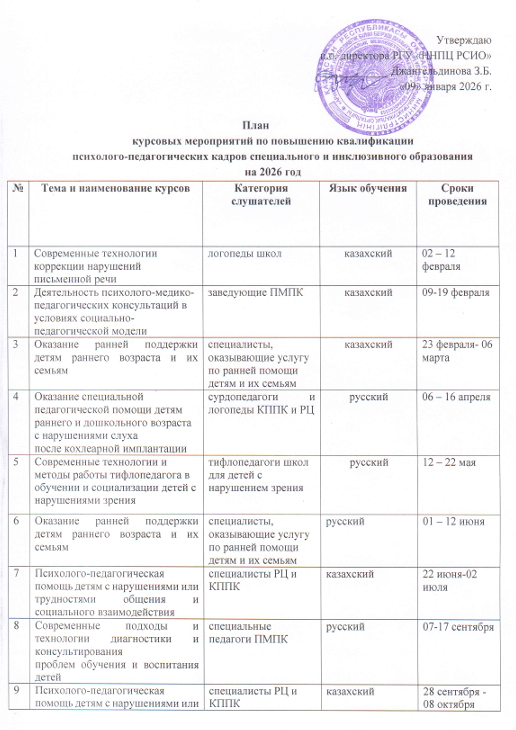 План курсовых мероприятий по повышению квалификации психолого-педагогических кадров специального и инклюзивного образования на 2026 год
